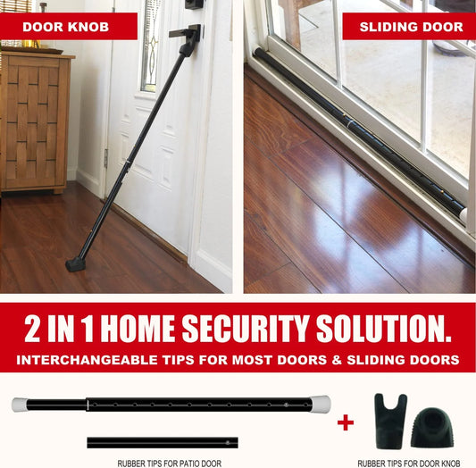 2-In-1 Door Security & Sliding Door Security Bar Iron Adjustable - Black