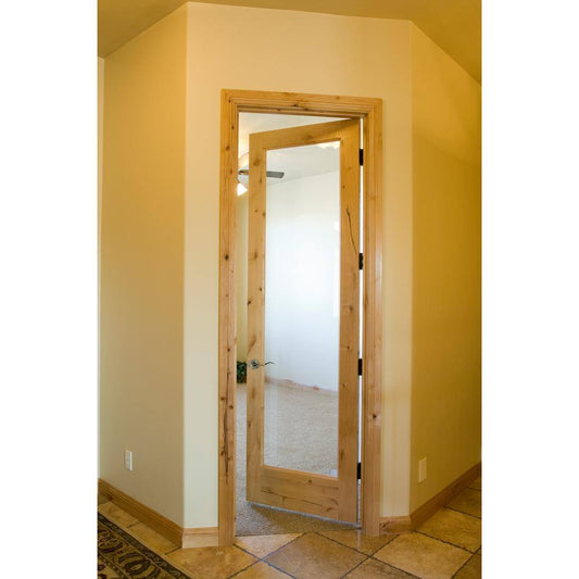 28 In. X 96 In. Rustic Knotty Alder 1-Lite with Solid Wood Core Right-Hand Single Prehung Interio...