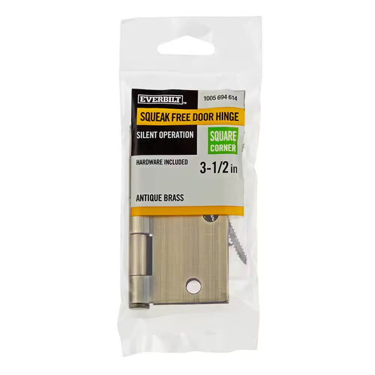 3-1/2 In. Square Radius Antique Brass Squeak-Free Door Hinge