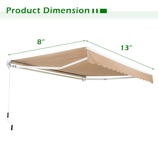 13' X 8' Manual Retractable Patio Awning,Outdoor Awning Retractable Sunshade Shelter-Beige