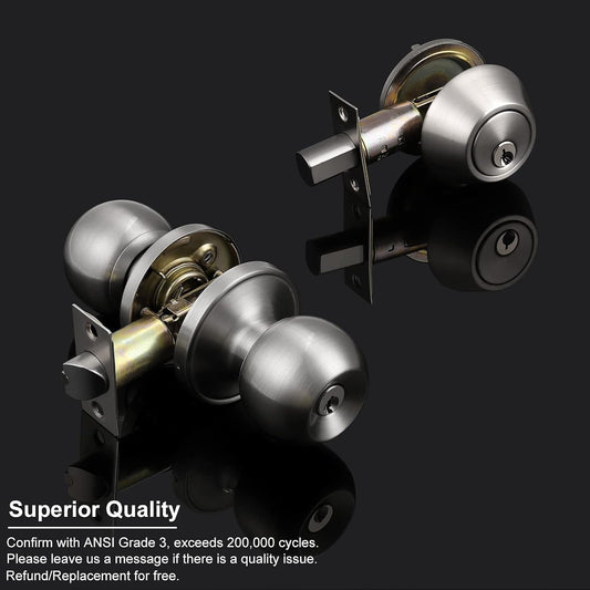 4 Pack All Keyed Same Entry Door Knobs with Single Cylinder Deadbolt for Exterior Front Door, Sat...