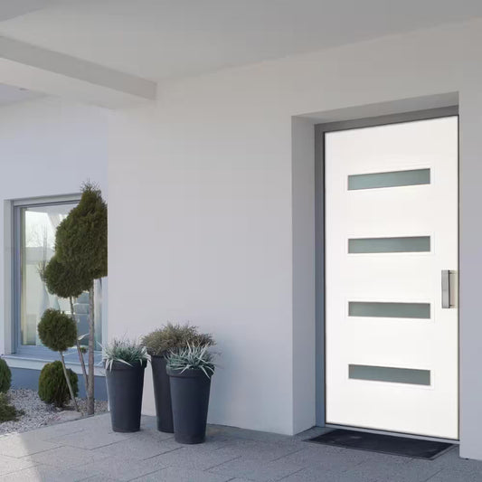 36 In. X 80 In. Smooth White Left-Hand Inswing 4-Lite Frosted Fiberglass Prehung Front Door
