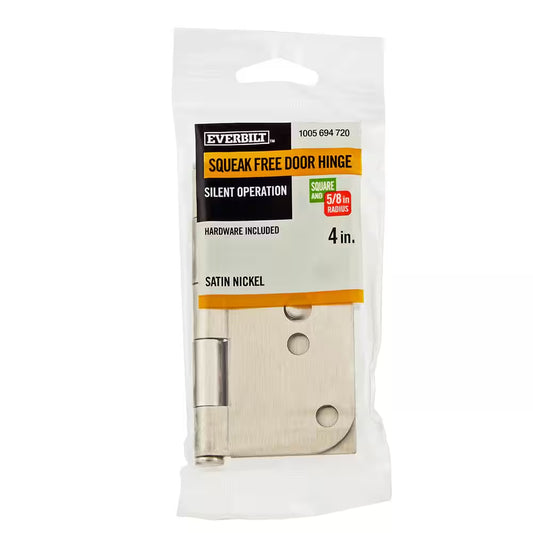 4 In. Square X 5/8 In. Radius Satin Nickel Squeak-Free Door Hinge