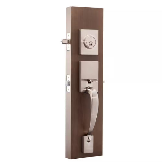 Craftsman Satin Stainless Door Handleset with Contemporary Handle Trim
