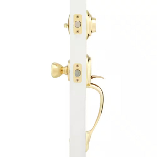 Dakota Polished Brass Single Cylinder Door Handleset with Tylo Door Knob Featuring Smartkey Security