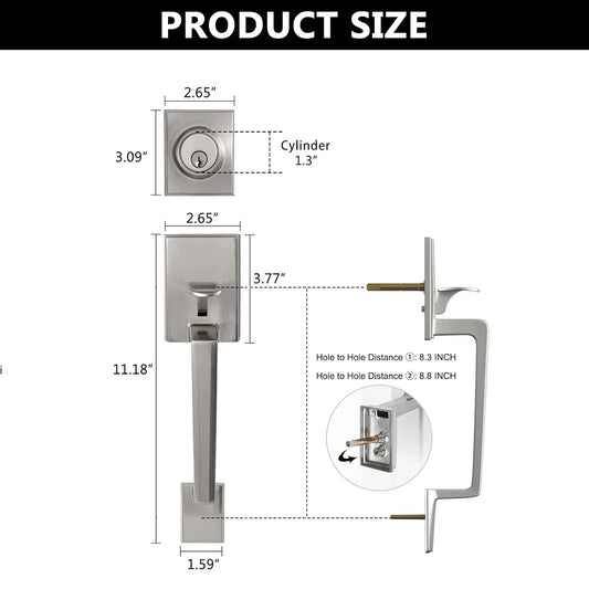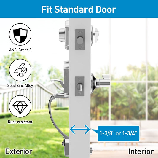 Front Door Handle Set Entrance Door Lock Set Satin Nickel Heavy Duty Entry Handle Set with Lock, ...