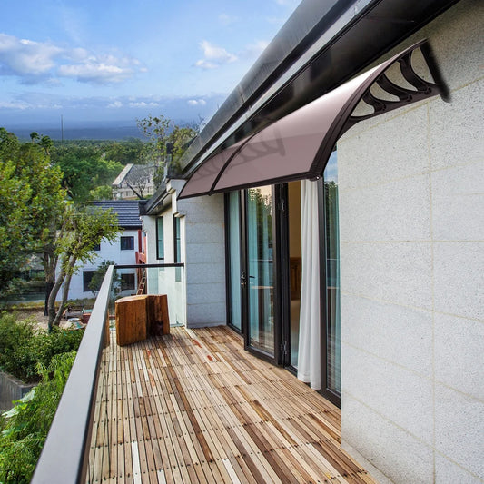 Polycarbonate Window Door Awning Canopy Brown with Black Bracket 40 Inch X 80 Inch