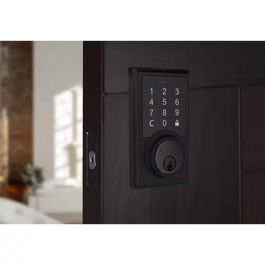 Square Matte Black Electronic Single Cylinder Touchpad Deadbolt